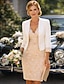 قطعتين عامودي طول الركبة فستان زفاف ضيف فستان أم العروس بدون كم رقبة سكوب أنيق قياس إضافي ضيف حفل زفاف Church ساتان دانتيل يشمل الشالة فساتين الجاكيتات مع زينة