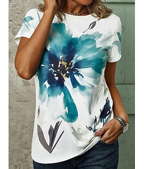 نسائي تي شيرت ورد كاجوال كم قصير V رقبة قمصان عادية مناسب للبس اليومي طباعة وردي بلاشيهغ أزرق أخضر الصيف