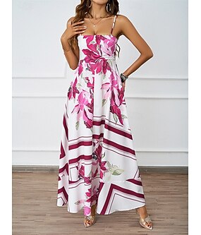 نسائي فستان طويل لباس غير رسمي فساتين بوهو شيك بوهيميا لطيف أنيق عطلة مناسب للبس اليومي شاطئ فضفاض صالح ورد هندسي بدون كم مع حمالة أزرق فوشيا الصيف
