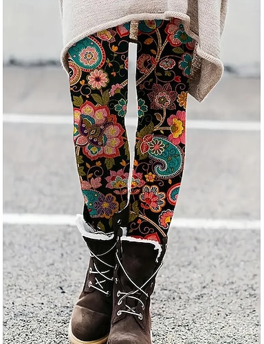 نسائي طماق العطلة عتيق موضة مكتمل الطول خصر عالي ورد الرسم طبع الدفء ناعم متنفس قابل للبسط رسمي الأماكن المفتوحة عطلة أحمر أزرق برتقالي أخضر الربيع الخريف الشتاء قياس نحيل
