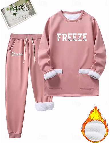 نسائي أنيق دافئ موضة طقم من قطعتين بدلة رياضية مجموعات السراويل كم طويل أسقف رقبة عالية مدورة أحرف طباعة الأماكن المفتوحة عطلة مناسب للبس اليومي أسود وردي بلاشيهغ زهري غامق الربيع عادي