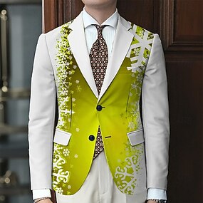 بليزر رجالي مطبوع عليه مشهد عيد الميلاد، معطف عمل، سترة دافئة وجيدة التهوية ومريحة، ملابس عمل للخروج، طباعة بأزرار، جيوب متعددة، مقاس عادي، خريف&إجازة الشتاء الطويلة