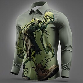 Halloween رجالي الزومبي الرعب كوستيوم هالوين قميص زر حتى القميص كم طويل الظلام بانك القوطية الأماكن المفتوحة مناسب للعطلات الصيف الربيع طوي طباعة ثلاثية الأبعاد قميص بياقة أخضر فاتح أزرق فاتح