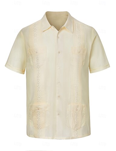 رجالي قميص قميص Guayabera أصفر فاتح أسود أبيض أخضر فاتح وردي بلاشيهغ كم قصير طوي مدرسة أداء مطرز ملابس أنيق العطلة عتيق محايد