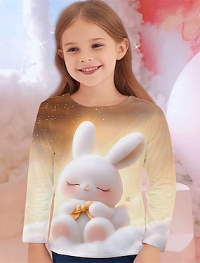 عيد الفصح للفتيات 3D الرسم حيوان أرنب تي شيرت كنزة مطبوعة كم طويل الربيع الخريف موضة أساسي أطفال 4-12 سنة رقبة العمل الأماكن المفتوحة فضفاض مناسب للبس اليومي عادي