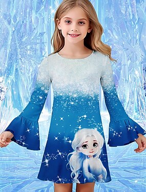 الفتيات 3D الرسم كارتون ندفة ثلجية فستان فستان ندفة الثلج فستان الكشكشة كم طويل الصيف الربيع عطلة مناسب للبس اليومي مناسب للعطلات جميل حلو أطفال 4-12 سنة لباس غير رسمي طول الركبة عادي