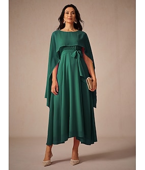 نسائي فستان طويل فستان شكل حرف A أنيق رسمي مناسب للحفلات ضيف حفل زفاف فضفاض صالح رقبة عالية مدورة أخضر داكن الصيف