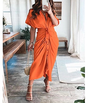 نسائي فستان طويل ماكسي شيرت دريس لباس غير رسمي لباس صيفي أنيق كاجوال عطلة مناسب للبس اليومي مواعدة عادي سهل كم قصير Lapel أسود شامبانيا أحمر بنفسجي فاتح الصيف الربيع