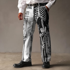 Halloween رجالي هيكل عظمي كوستيوم هالوين بدلة بنطلونات سروال البدلة خصر متوسط الظلام بانك القوطية الأماكن المفتوحة مناسب للعطلات بنطال مستقيم الساق مع جيوب الربيع الخريف طباعة ثلاثية الأبعاد