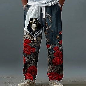 رجالي كوستيوم هالوين جماجم بنطلونات السراويل الفضفاضة السراويل خصر متوسط الطراز القوطي الداكن مناسب للعطلات ملابس الشارع خصر مرن برباط بنطلون يشبه الكتان مع جيوب الصيف الربيع طباعة ثلاثية الأبعاد