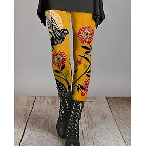 نسائي طماق بنطال ضيق مريح العطلة عتيق النمط العرقي مكتمل الطول خصر عالي ورد طبع الدفء مريح قابل للبسط فضفاض مناسب للبس اليومي عطلة أصفر الربيع الخريف الشتاء قياس نحيل