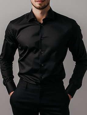 قميص حفلة الرجال اليومية بدلات العودة إلى الوطن مقاس قياسي بأكمام طويلة ليد ملونة صلبة بوليستر أسود 2025