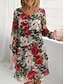 نسائي فستان قصير لباس غير رسمي فستان من الشيفون فستان شيفت أنيق عتيق الأماكن المفتوحة مناسب للبس اليومي عطلة نهاية الاسبوع عادي ورد كم طويل رقبة عالية مدورة بني الصيف الربيع الخريف
