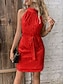نسائي فستان قصير فستان شيث فستان الرسن فستان بدون أكتاف حفلة كوكتيل فساتين شبه رسمية زفاف الأماكن المفتوحة مناسب للحفلات نحيل لون الصلبة بدون كم الرقبة الرسن أسود أبيض وردي بلاشيهغ أحمر