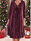 نسائي فستان قصير فستان شيث حفلة كوكتيل فساتين شبه رسمية الأماكن المفتوحة مناسب للحفلات ضيف حفل زفاف عادي لون الصلبة كم طويل V رقبة شامبانيا أحمر الخريف الشتاء