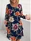 نسائي فستان قصير لباس غير رسمي فستان من الشيفون فستان شيفت أنيق موضة الحديث الأماكن المفتوحة مناسب للبس اليومي عطلة نهاية الاسبوع عادي ورد كم طويل رقبة عالية مدورة أزرق البحرية الصيف الربيع الخريف