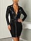 نسائي فستان قصير فستان كوكتيل فستان شيث فستان من الجلد موضة حار الحديث مناسب للحفلات مناسبة خاصة حفلة ليلية عادي سهل كم طويل رقبة عالية أسود الربيع الخريف الشتاء
