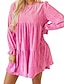فستان نسائي قصير ذو طبقات مكشكشة وحاشية فستان كاجوال من الشيفون فستان قصير أنيق عصري مناسب للخروجات اليومية في عطلة نهاية الأسبوع مقاس عادي هندسي بأكمام طويلة ورقبة دائرية وردي للصيف والربيع والخريف