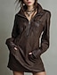 نسائي فستان قصير فستان شيث فستان من الجلد موضة الحديث مناسب للحفلات مناسبة خاصة حفلة ليلية عادي سهل بدون كم V رقبة بني الربيع الخريف الشتاء