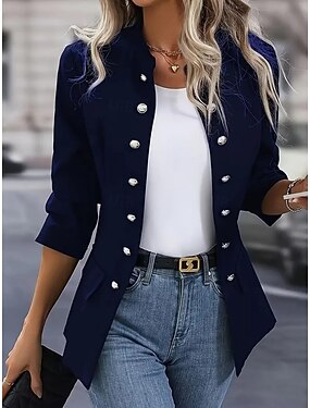 نسائي سترة مريح جيب Buttons موضة سهل شارع مناسب للعطلات صدر فردي عادية طوي عادي كم طويل ملابس خارجية أسود نبيذ أزرق البحرية الخريف