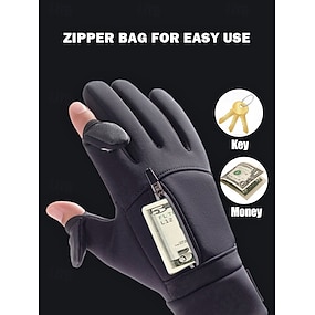 قفازات شتوية للرجال مقاومة للماء تعمل باللمس، قفازات قيادة حرارية دافئة مبطنة بالصوف مع سحاب، قفازات رياضية خارجية مقاومة للرياح للطقس البارد