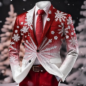 عيد الميلاد المجيد رجالي ندفة ثلجية جاكيت بليزر مريح فني كاجوال ملابس الحفلات والسهرات مناسب للبس اليومي مهرجان طباعة ثلاثية الأبعاد Buttons الربيع الخريف الشتاء حز كم طويل أسود أحمر أزرق