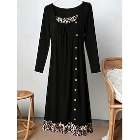 فستان ميدي نسائي بياقة على شكل V بأكمام طويلة كفتان خفيف الوزن بقصة فضفاضة بفستان شيفت كاجوال للخروج بقصة فضفاضة مع جرافيك حيواني بأكمام طويلة بياقة على شكل V باللون الأسود والأبيض والأخضر للخريف