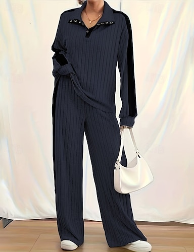 نسائي أناقة الشارع أنيق مجموعات السراويل كم طويل رقبة عالية لون الصلبة بقع مناسب للبس اليومي ملابس عمل أسود أبيض كاكي الصيف عادي