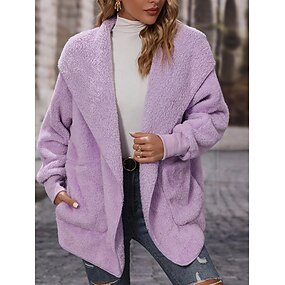 نسائي سترة الصوف معطف تيدي سترة هوديي الدفء متنفس جيب مخطط بالصوف كاجوال سهل عطلة شارع مناسب للبس اليومي مناسب للخارج الأمام مفتوح هودي عادي كم طويل ملابس خارجية أسود أرجواني الخريف الشتاء