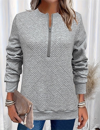 نسائي سويت شيرت ذو نسيج بلوزات سويت شيرت بسحاب سهل أناقة الشارع كاجوال مريح كم طويل رقبة عالية قمصان عادية شارع مناسب للعطلات مناسب للخارج نصف سحاب ربع سحاب ربع الرمز البريدي أبيض رمادي الربيع الخريف