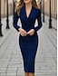 نسائي فستان ميدي فستان رباط فستان ضيق فساتين شبه رسمية المكتب عادي سهل كم طويل V رقبة أسود نبيذ أزرق داكن الربيع الخريف