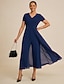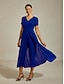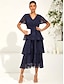نسائي فستان طويل فستان شكل حرف A أنيق رسمي أكمام واسعة ضيف حفل زفاف حفلة كوكتيل عادي سهل كم قصير V رقبة أزرق داكن الصيف