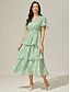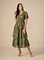 نسائي فستان طويل فستان شكل حرف A أنيق رسمي أكمام واسعة ضيف حفل زفاف حفلة كوكتيل عادي سهل كم قصير V رقبة أخضر زيتي الصيف