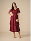 نسائي فستان طويل فستان شكل حرف A أنيق رسمي أكمام واسعة ضيف حفل زفاف حفلة كوكتيل عادي سهل كم قصير V رقبة نبيذ الصيف