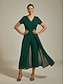 جمبسوت نسائي أخضر داكن بفتحة على شكل حرف V، تصميم من قطعتين صناعيتين، مظهر شفاف من القماش المرن، وجهة ضيفة حفل زفاف في الربيع والصيف والخريف