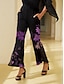 بنطلون نسائي من القماش المطاطي بطبعة زهور من الشيفون الشفاف بألواح واسعة الساق وخصر مرن أنيق ومريح للاستخدام اليومي في الخريف