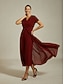 نسائي انثى فضفاض صفيق مكتمل الطول شيفون أنيق رسمي عنابي الصيف الربيع XS S M