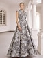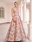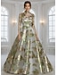 A-الخط طول الأرض فساتين السهرة منفوش الزي الرسمي أنيق زهري 3/4 الكم رقبة عالية زفاف رسمي جيبة قماش الجاكار مع جيبة