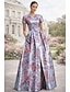 A-الخط طول الأرض فستان سهرة مع عباءة فساتين السهرة الزي الرسمي أنيق عتيق زهري كم طويل دون الكتف زفاف رسمي طبقات ساتان قماش الجاكار مع طباعة الأزهار جيبة