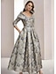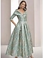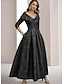A-الخط طول الأرض فستان رسمي فساتين متنوعه فساتين السهرة منفوش الزي الرسمي أنيق 3/4 الكم V رقبة حفلة في الحديقة زفاف قماش الجاكار مع جيبة