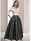 A-الخط طول الأرض فساتين السهرة منفوش الزي الرسمي أنيق فستان أسود قصير حريري كم طويل دون الكتف زفاف رسمي طبقات ساتان دانتيل مع جيبة