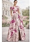 A-الخط طول الأرض فساتين السهرة منفوش الزي الرسمي أنيق عتيق كم قصير قبعة القميص زفاف رسمي نايلون مع طباعة الأزهار انقسام جيبة