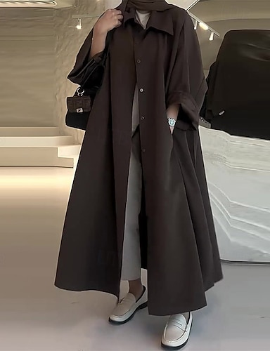 نسائي معطف الدفء مريح Buttons جيب موضة حلو سهل شارع مناسب للبس اليومي كاجوال / يومي عطلة نهاية الاسبوع صدر فردي طويلة طوي عادي كم طويل ملابس خارجية كوفي الخريف الشتاء