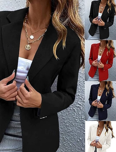 نسائي سترة مريح متنفس جيب كاجوال سهل رسمي المكتب شارع فضفاض صدر مزدوج عادية طوي عادي كم طويل ملابس خارجية أسود أزرق فوشيا الصيف الخريف