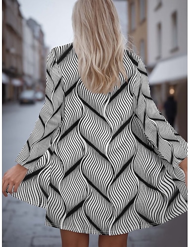 نسائي معطف شتوي ترانش كوت خفة الوزن مريح طباعة الأمام مفتوح عتيق موضة كاجوال هندسي عطلة فضفاض طويلة نوع من غير طوق عادي كم طويل ملابس خارجية رمادي الربيع الخريف