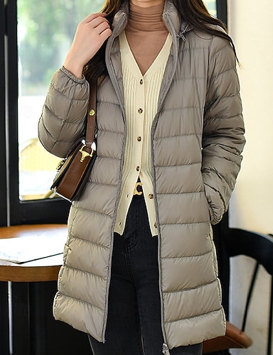 نسائي أسفل معطف الدفء مريح سحاب جيب موضة سهل مناسب للعطلات كاجوال / يومي عطلة نهاية الاسبوع سحاب طويلة مع قبعة عادي كم طويل ملابس خارجية أرزق بحري نبيذ أزرق الخريف الشتاء