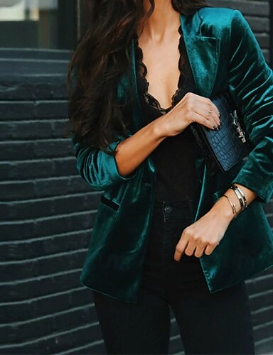 نسائي سترة مريح جيب أنيق موضة الخارج سهل مناسب للخارج كاجوال / يومي عطلة نهاية الاسبوع كرديجا عادية Lapel عادي كم طويل ملابس خارجية أسود نبيذ أخضر الربيع الخريف