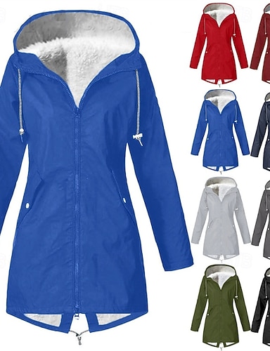 نسائي معطف شتوي سترة هوديي الدفء مريح سحاب جيب كاجوال سهل الأماكن المفتوحة عطلة مناسب للخارج عطلة نهاية الاسبوع طويلة مع قبعة عادي كم طويل ملابس خارجية أرزق بحري أسود وردي بلاشيهغ الخريف الشتاء