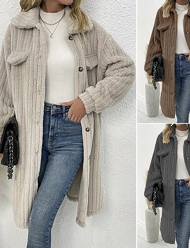 نسائي معطف شتوي سترة شيربا مريح متنفس جيب Buttons كاجوال سهل عطلة شارع فضفاض مناسب للبس اليومي صدر فردي طويلة طوي عادي كم طويل ملابس خارجية أسود نبيذ رمادي غامق الربيع الخريف