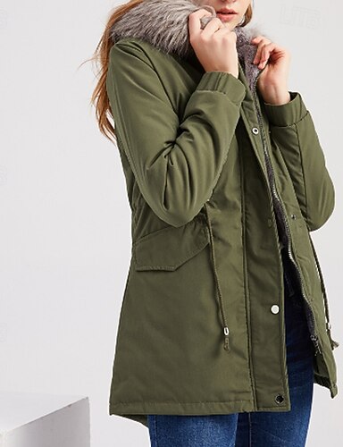 نسائي معطف شتوي حديقة الدفء مريح سحاب جيب طوق الفراء كاجوال سهل الأماكن المفتوحة عطلة مناسب للبس اليومي مناسب للخارج طويلة مع قبعة عادي كم طويل ملابس خارجية أرزق بحري رمادي وردي أسود الخريف الشتاء